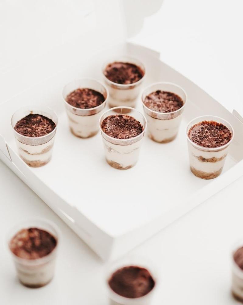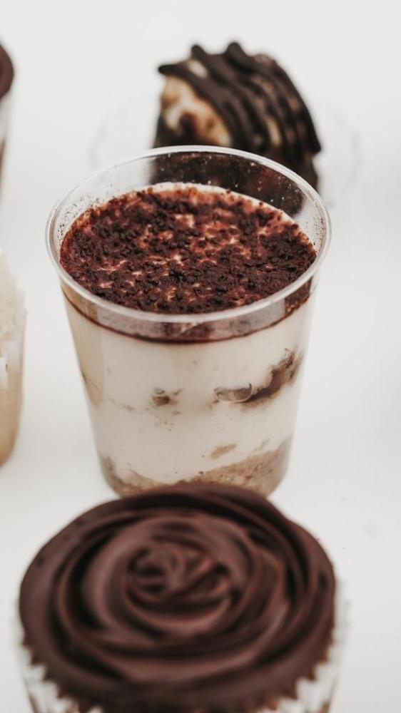 نكهة التيراميسو المعروفة بالقهوة و طبقات البسكوت و الكريمة اللذيذة, مقدمه في كاسات صغيرة مناسبة للجمعات و للضيافة الصحية.